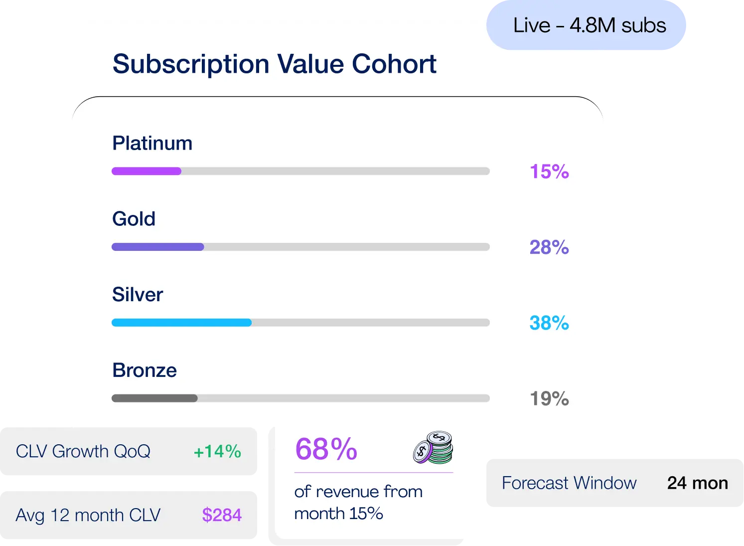 Calculates predicted lifetime value and dynamically segments subscribers to prioritise retention investment.