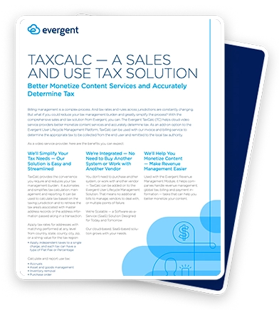 Managing sales and use tax shouldn’t slow down your ability to monetize content. The Evergent Tax Calc Solution helps cloud video service providers accurately calculate, manage, and report