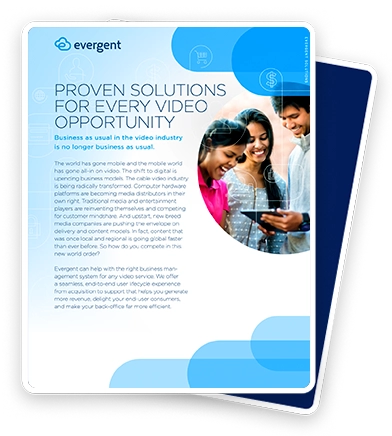 Learn how Evergent helps providers win in every model, market, and moment. Our solutions brochure explores how a single, proven user lifecycle and monetization platform supports cable and satellite operators, telecom and wireless providers, media & entertainment companies, and emerging digital players as they adapt to a mobile-first, global video economy. From legacy transformation to direct-to-consumer launches and next-generation mobile video services, this guide breaks down how Evergent solutions and strategies enable faster innovation, smarter monetization, and scalable growth—no matter where you play in the video value chain.